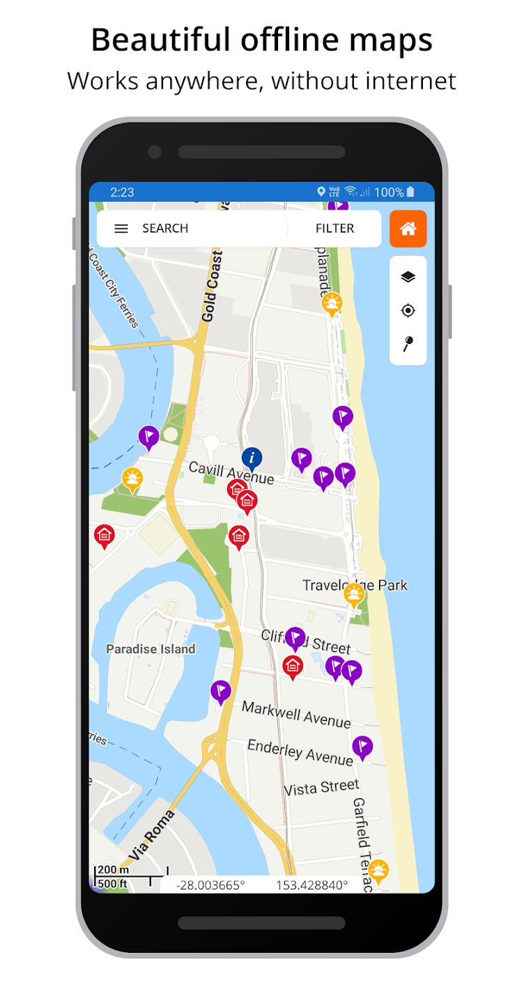 An offline-first option that stores maps for use without an internet connection. Great for travellers or those in areas with spotty reception.